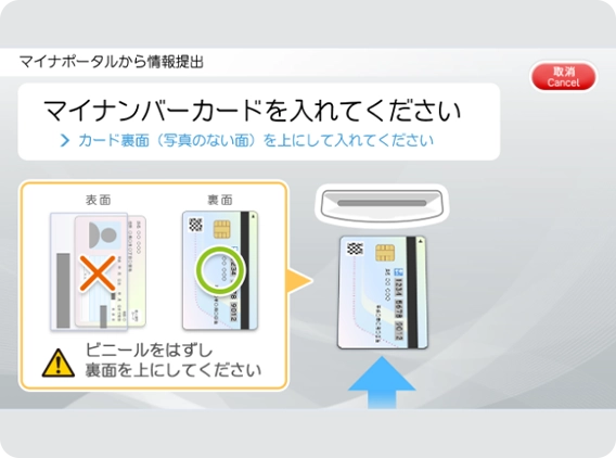 - 4マイナンバーカードを挿入し、暗証番号を入力