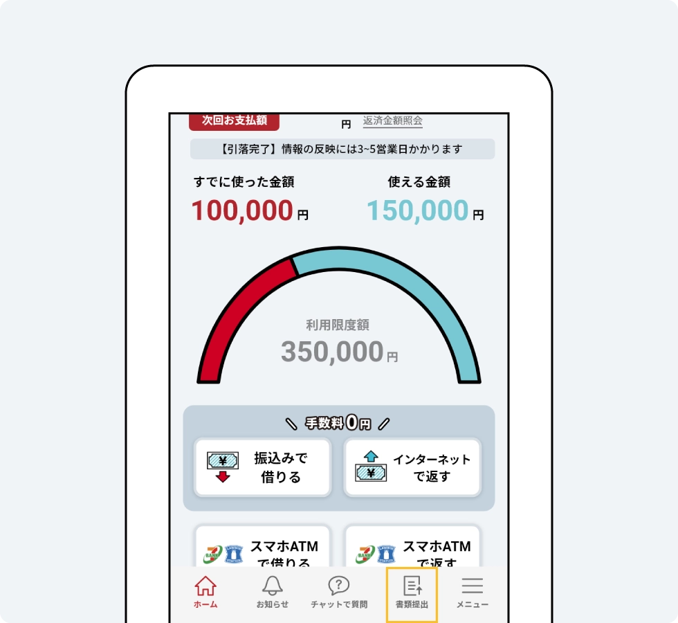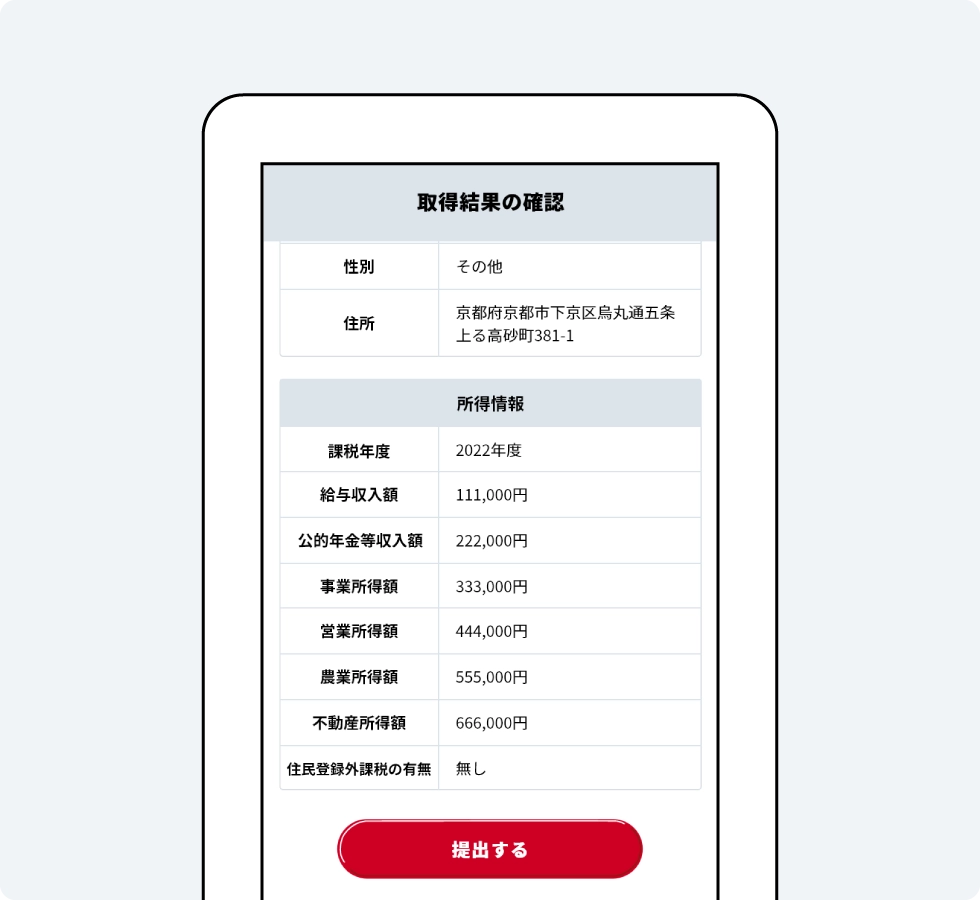 ①収入証明書の余白部分にお客様氏名・携帯電話番号を記入してください。