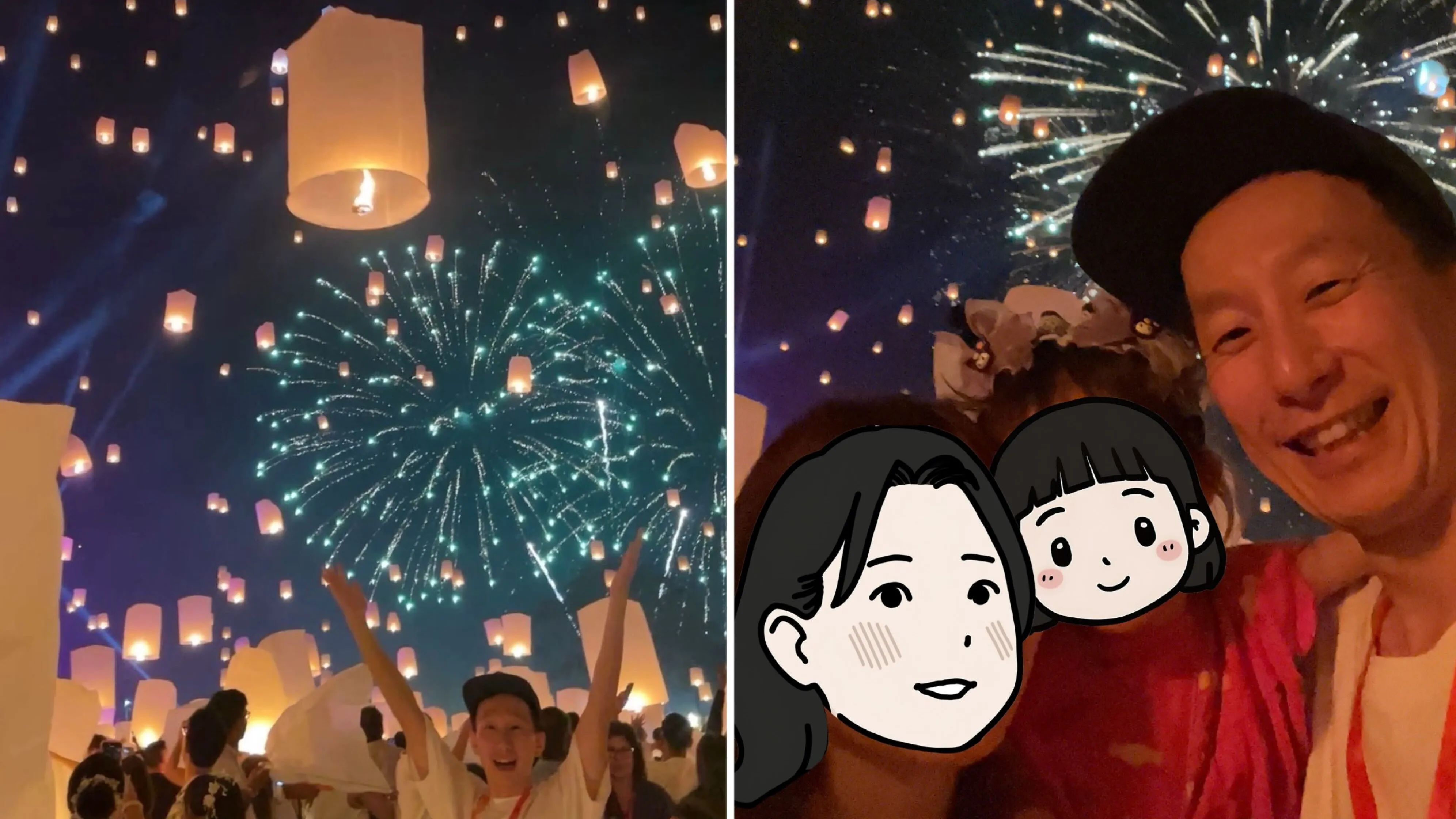 2024年11月に以前上司からすすめられたタイ北部のコムローイ祭りに家族で行きました。このお祭りは、火がついた大きなランタンを空に飛ばすことで有名です。ランタンは両手を広げたくらいの大きさで、一斉に空へ飛んでいく様子は本当に美しく、感動しました。ランタンがうまく飛ばずに落ちてくるのを消しに来てくれますが、燃えていて結構怖いのでご注意を。ちなみに、5歳の娘は火が怖くてずっと大泣き。かわいそうでしたが、それでも一生忘れられない、かけがえのない貴重な体験でした。また、この祭りの時期はホテルがすごく高くなるので、開催日が発表される半年前には予約をしておくのがおすすめです!