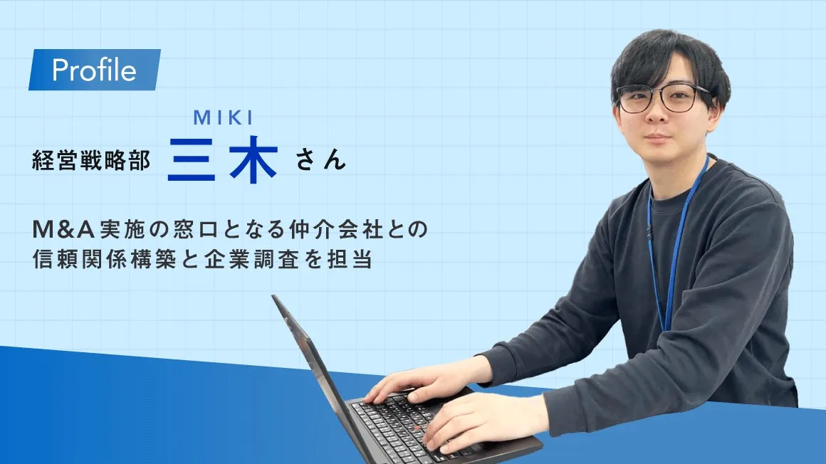 三木さんにインタビュー。実際にどんな業務を行っているのか仕事への思いを語っていただくと共に、普段なかなか知ることのできない、M&Aのリアルな仕事をお届けします。こんな風にキャリアを積みたい!会社の推進する業務に携わりたい!あなたのキャリアのヒントが隠れているかもしれません。