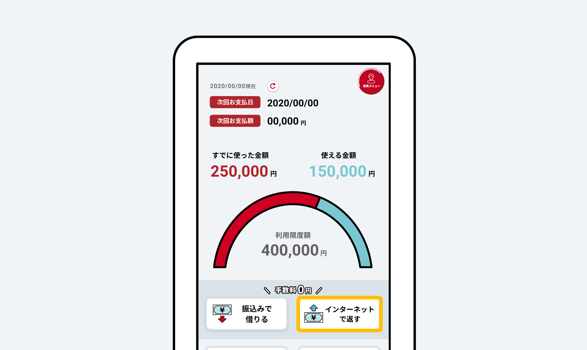 | 審査の結果 | 利用限度額 | 借入残高 | 借入可能額 |