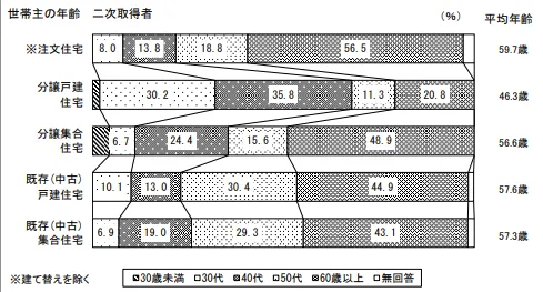 国土交通省の令和5年度住宅市場動向調査報告書によると、2回目の住居を購入して住み替える方の年齢は、注文住宅や分譲集合住宅を中心に50~60代が多くなっています。