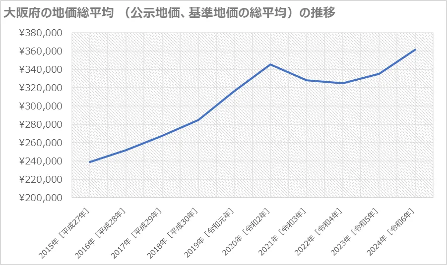 大阪府では2022年から3年連続で地価の上昇が続いています。