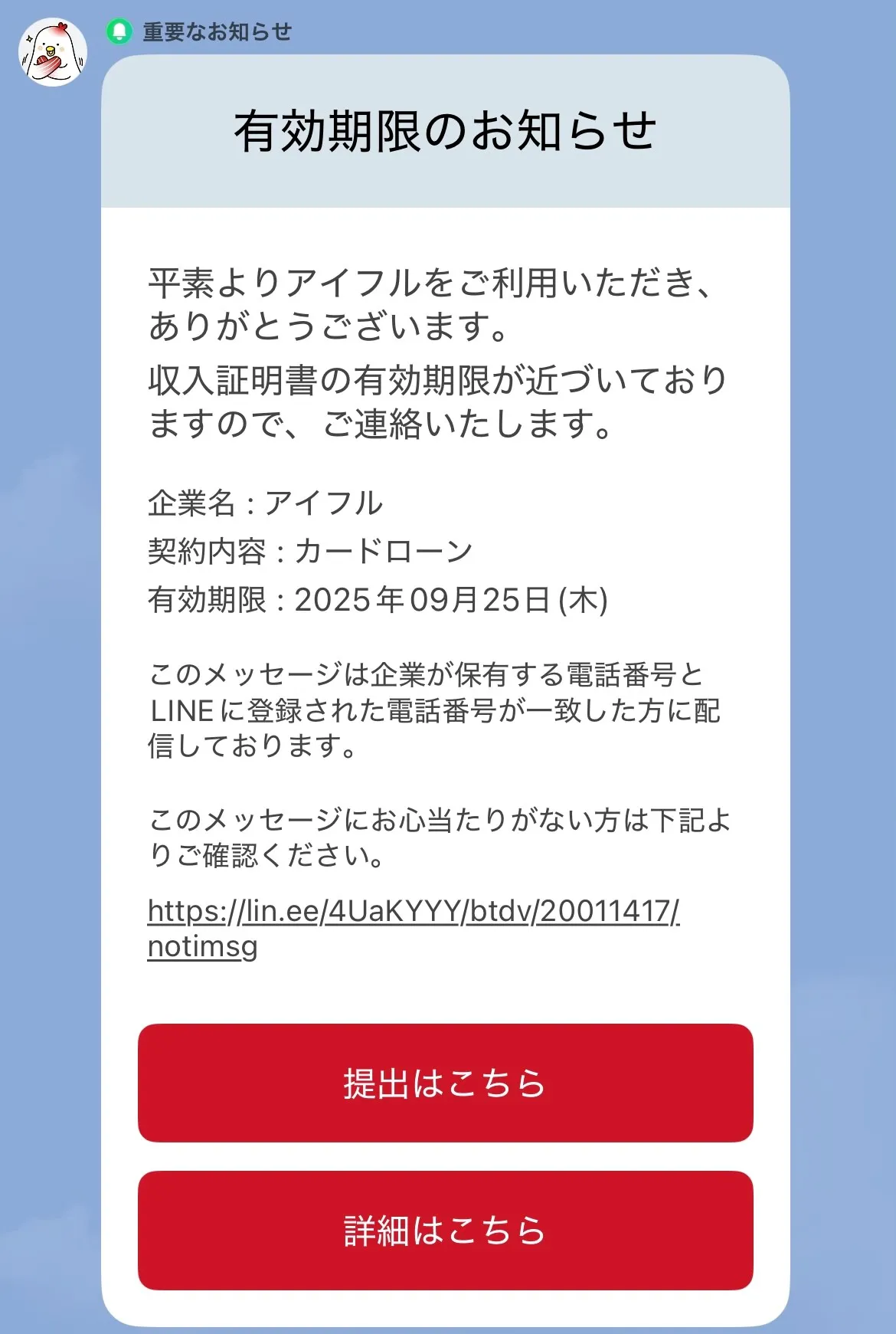 アイフルからお客様へお知らせがあった場合、LINEで通知します。