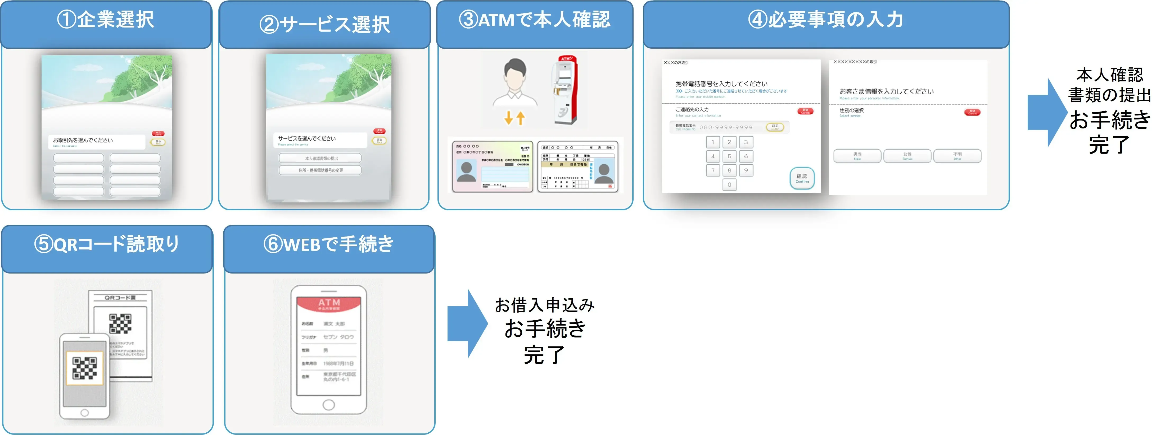 セブン銀行の「ATM窓口」サービスを通じて、「お借入申込み」や「本人確認書類の提出」が可能となります。